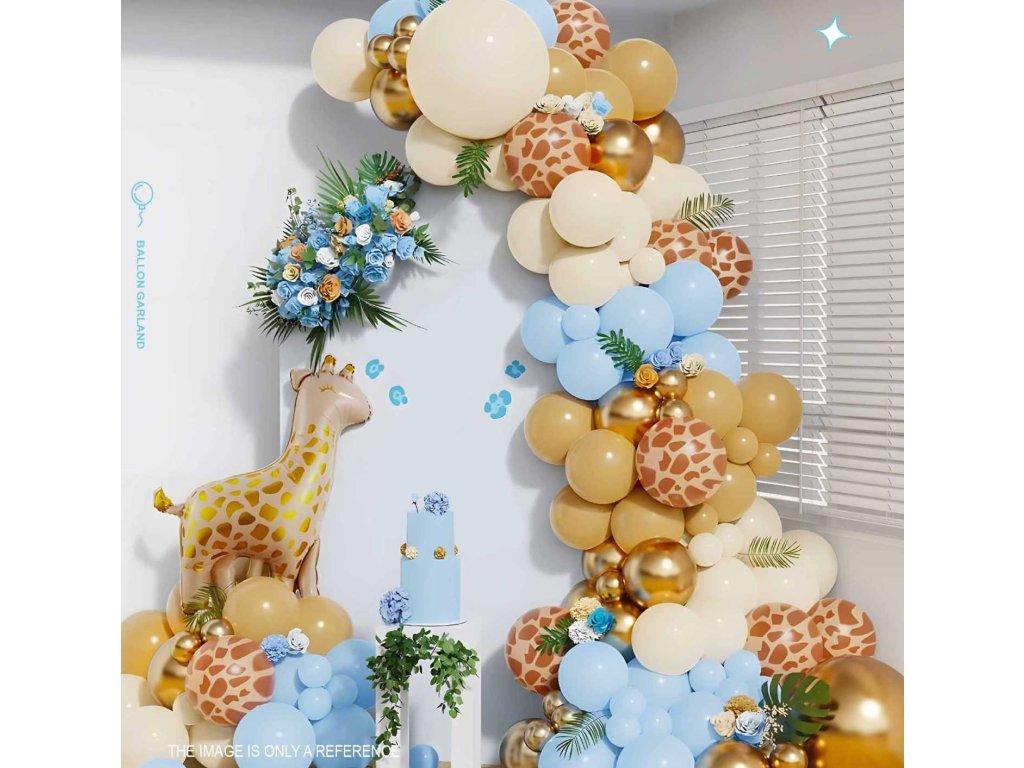 Balónková girlanda modro-bílá Balení obsahuje 66 ks Latexových balonků: 30x - A50 - 13cm 30x - G90 - 26cm 5x - GS120 - 33cm 1x - páska - 3m Velikost...