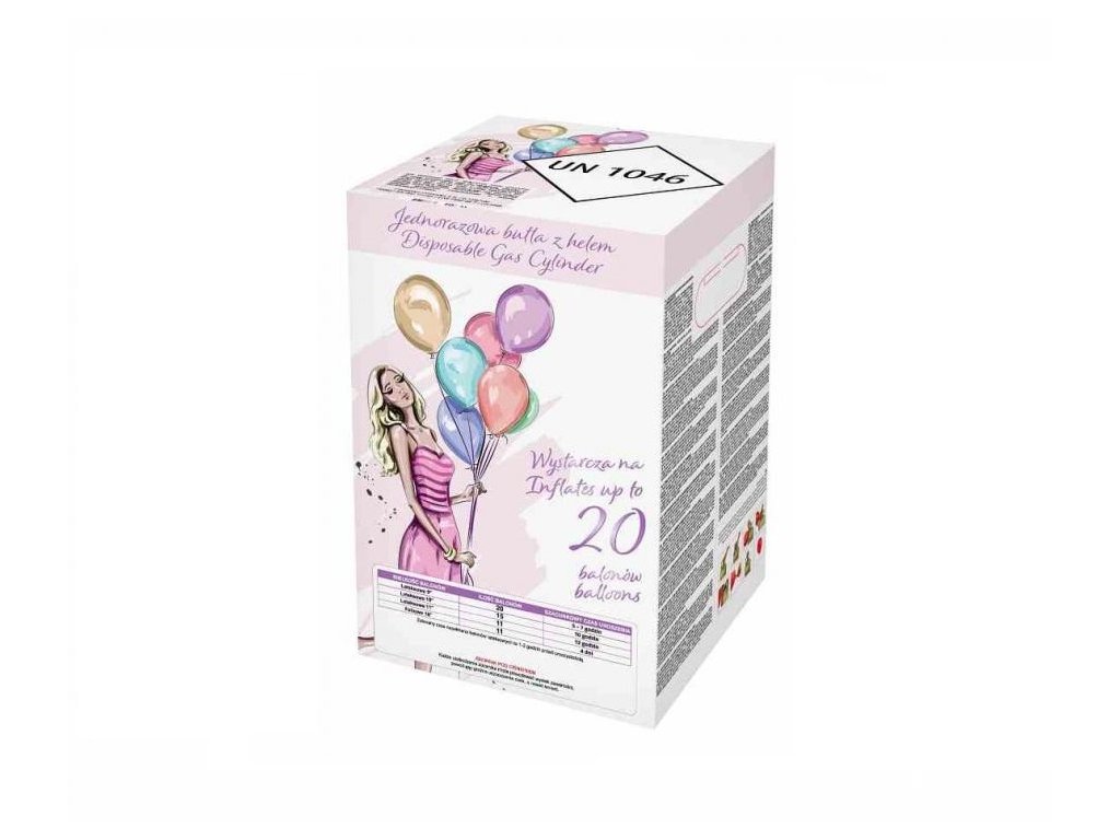 - Tímto obsahem plynu nafouknete až 20 latexových balónků o průměru 23 cm.