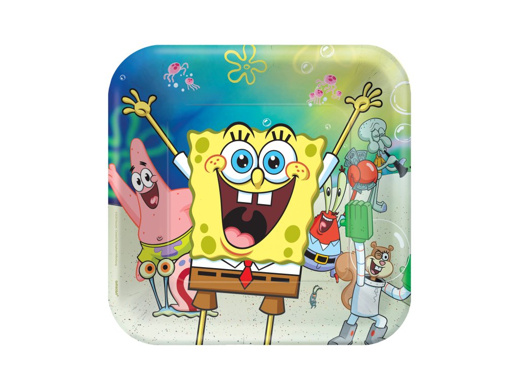 Talířky papírové ve tvaru čtverce s potiskem SpongeBob