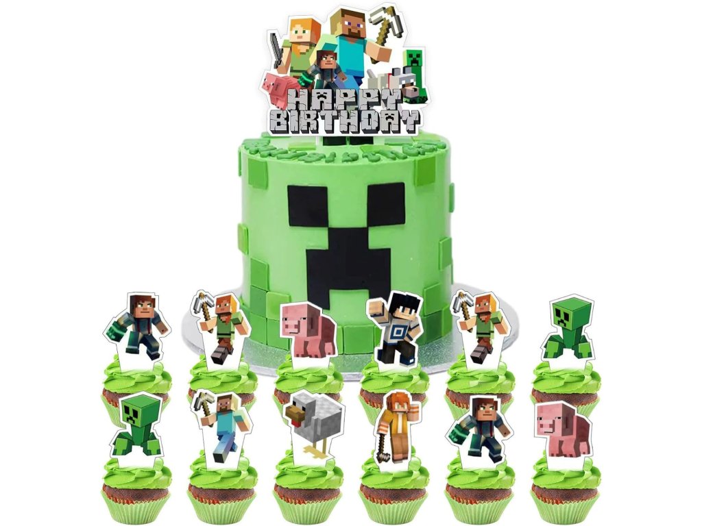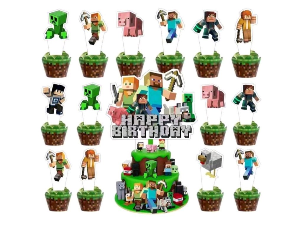 Sada zápichů na dort Minecraft Happy Birthday 24 ks